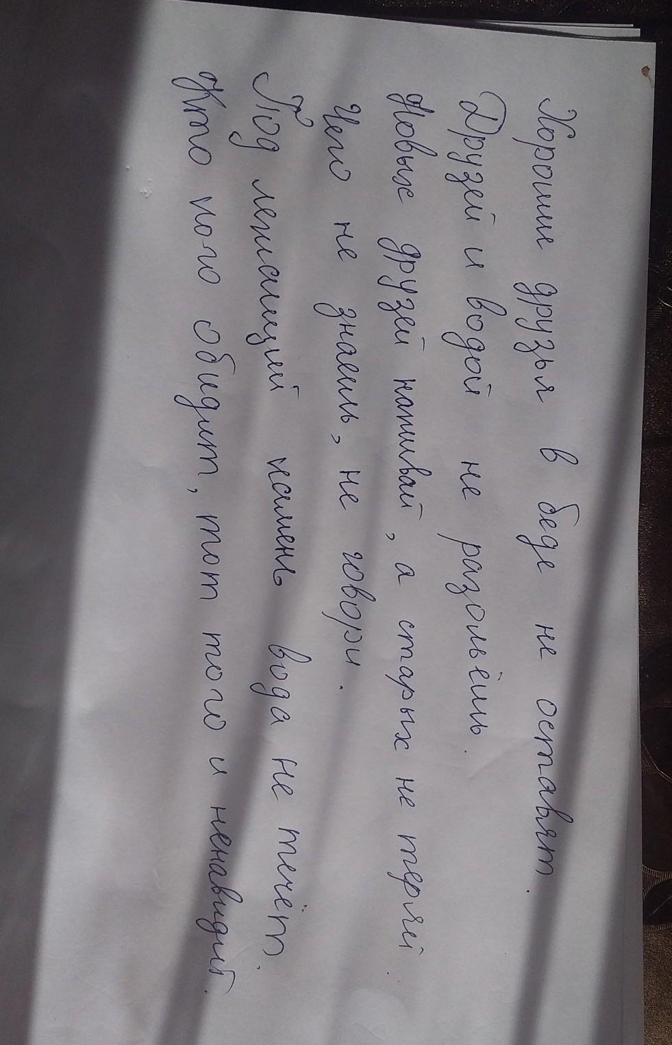Ответ: Хорошие друзья в беде не оставят, друзей и водой не разольешь, новых друзей наживай, а старых не теряй, чего не знаешь, не говори, под лежащий камень вода не течёт, кто кого обидит, тот того и ненавидит.