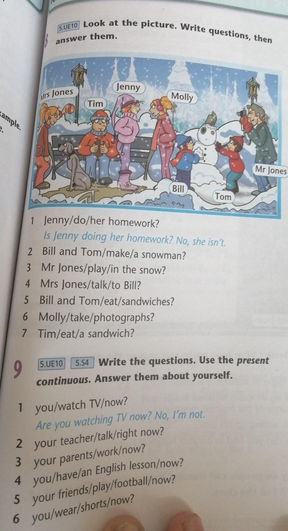 5.Are Bill and Tom eating sandwiches?No they aren't