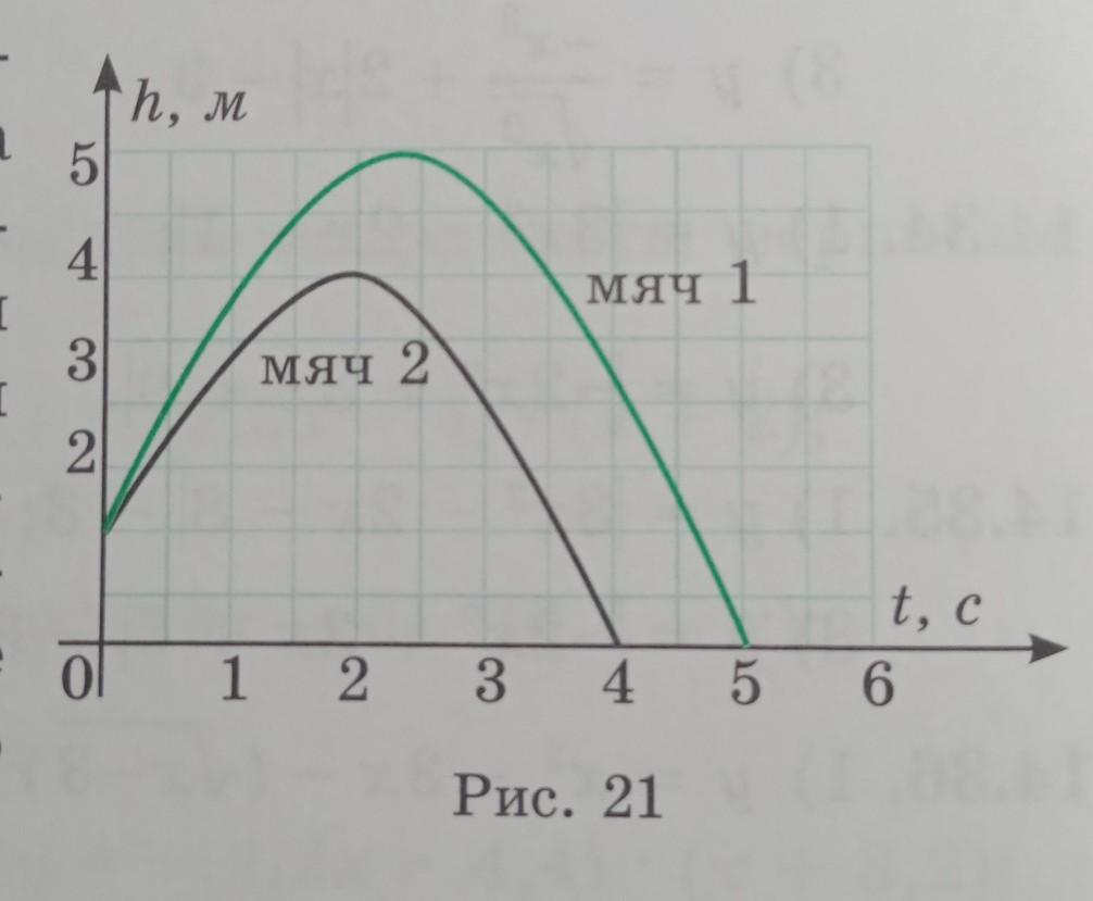 Ответ: мяч 1 в первые 3 секунды полетел выше мяча 2 на 1,5 метра