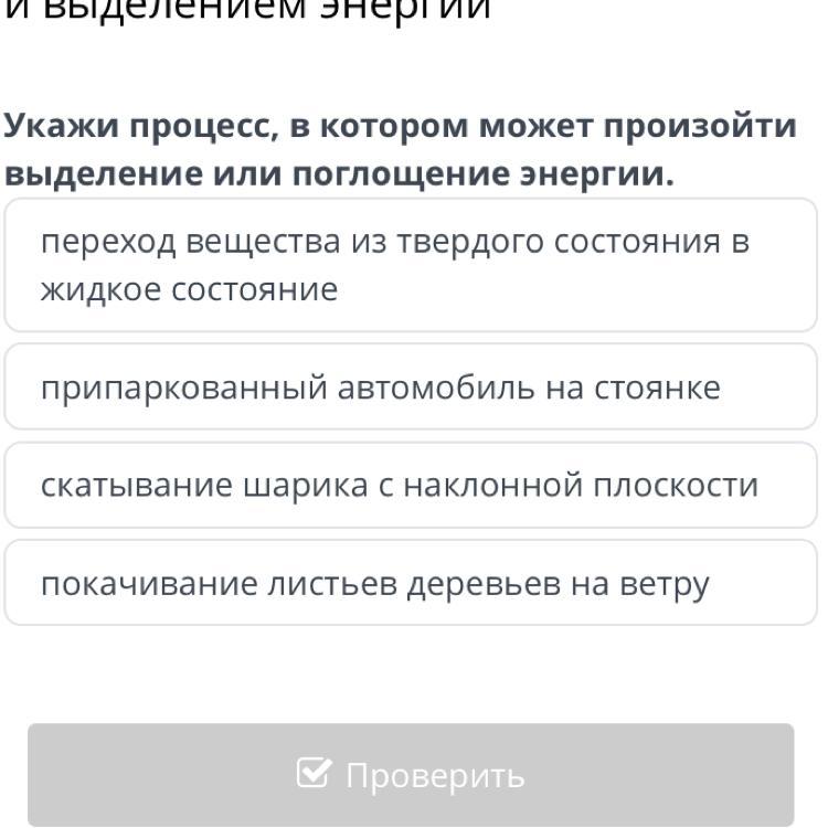 из предложенных процессов выбери те которые связаны с поглощением энергии