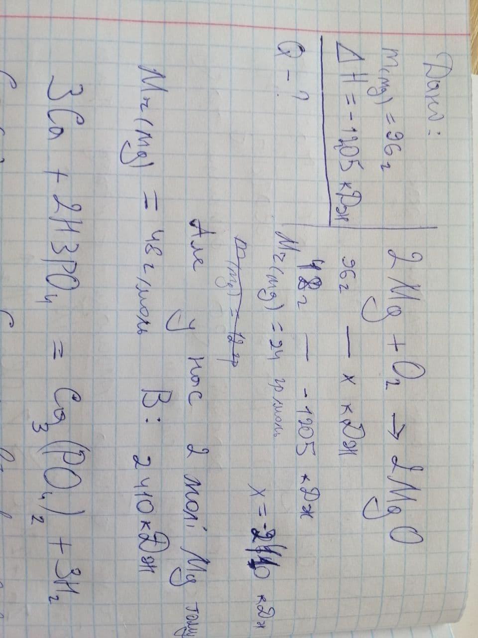 2Mg + O2 → 2MgO; ΔН = -1205 кДж