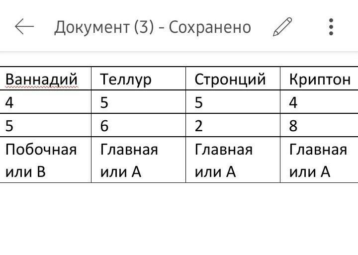 ОЧЕНЬ НУЖНО Определите положение следующих элементов в Периодической таблице, указав период, группу, подгруппу: углерод, ванадий, теллур, стронций, криптон