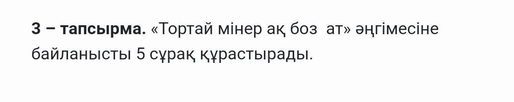 «Тортай мінер ақ боз ат» әңгімесіне байланысты 5 сұрақ құрастырандар