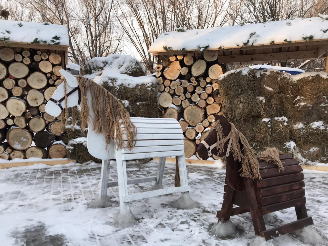 Я пришла в зимний парк. Там было очень красиво: заснеженные скульптуры, колесо обозрения... В парке не было людно, зато это прекрасное место для проведения свободного времени. Сначала мы были на колесе обозрения и гуляли там. Позже, мы пошли в другое место: к скульптурам. Это были деревянные фигуры лошадей. Рядом с ними стояла искуственная имитация загона. Также, сзади от лошадок стояло сено, которое припорошило снегом. Это были чудесные выходные!