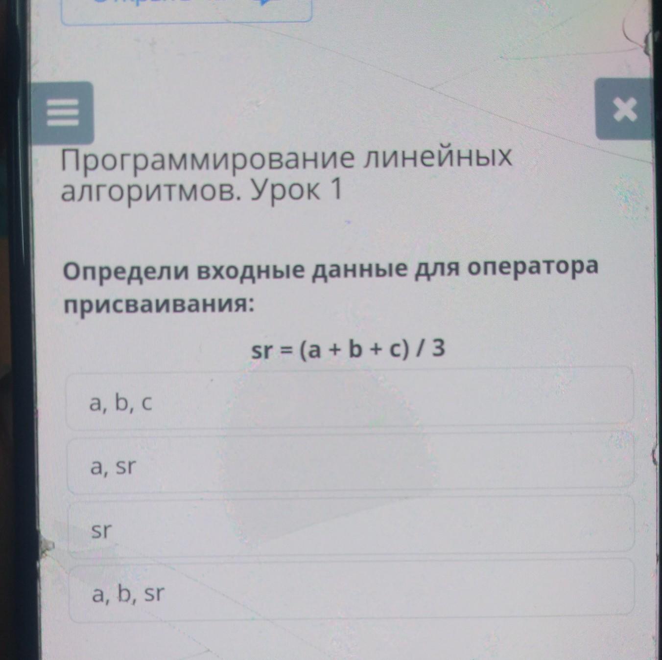Определи входные данные для оператора