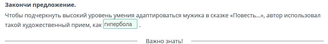 Чтобы подчеркнуть высокий уровень умения адаптироваться мужика в сказке «Повесть…», автор использовал такой художественный прием, как