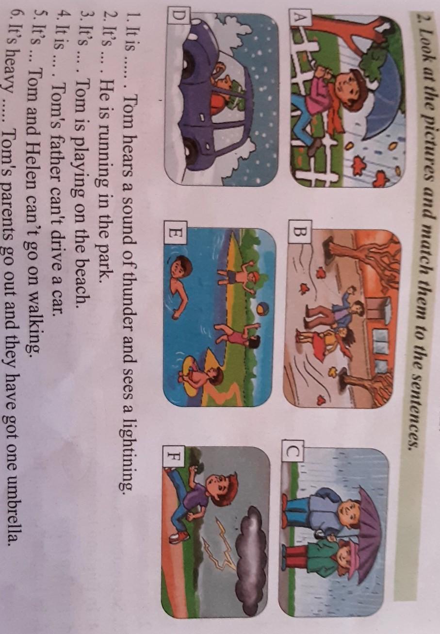 6. It's heavy ..... Tom's parents go out and they have got one umbrella.