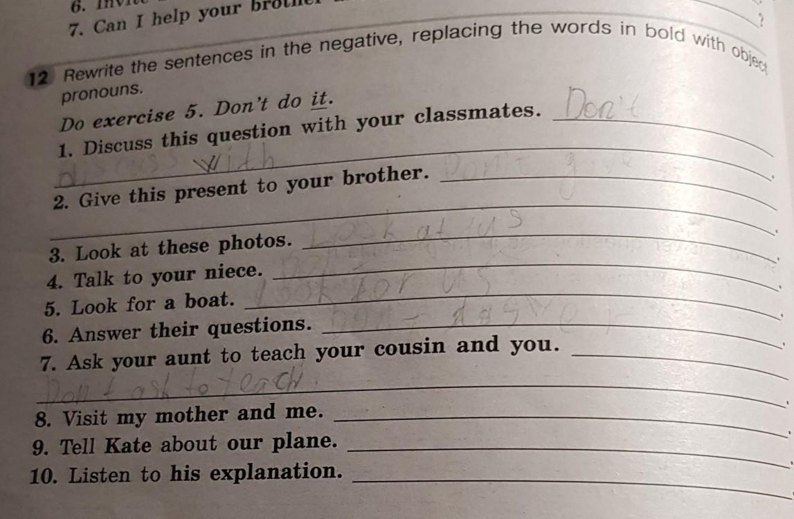 В данном задании нужно просто переписать предложения, вставив вначале глагол “don’t”