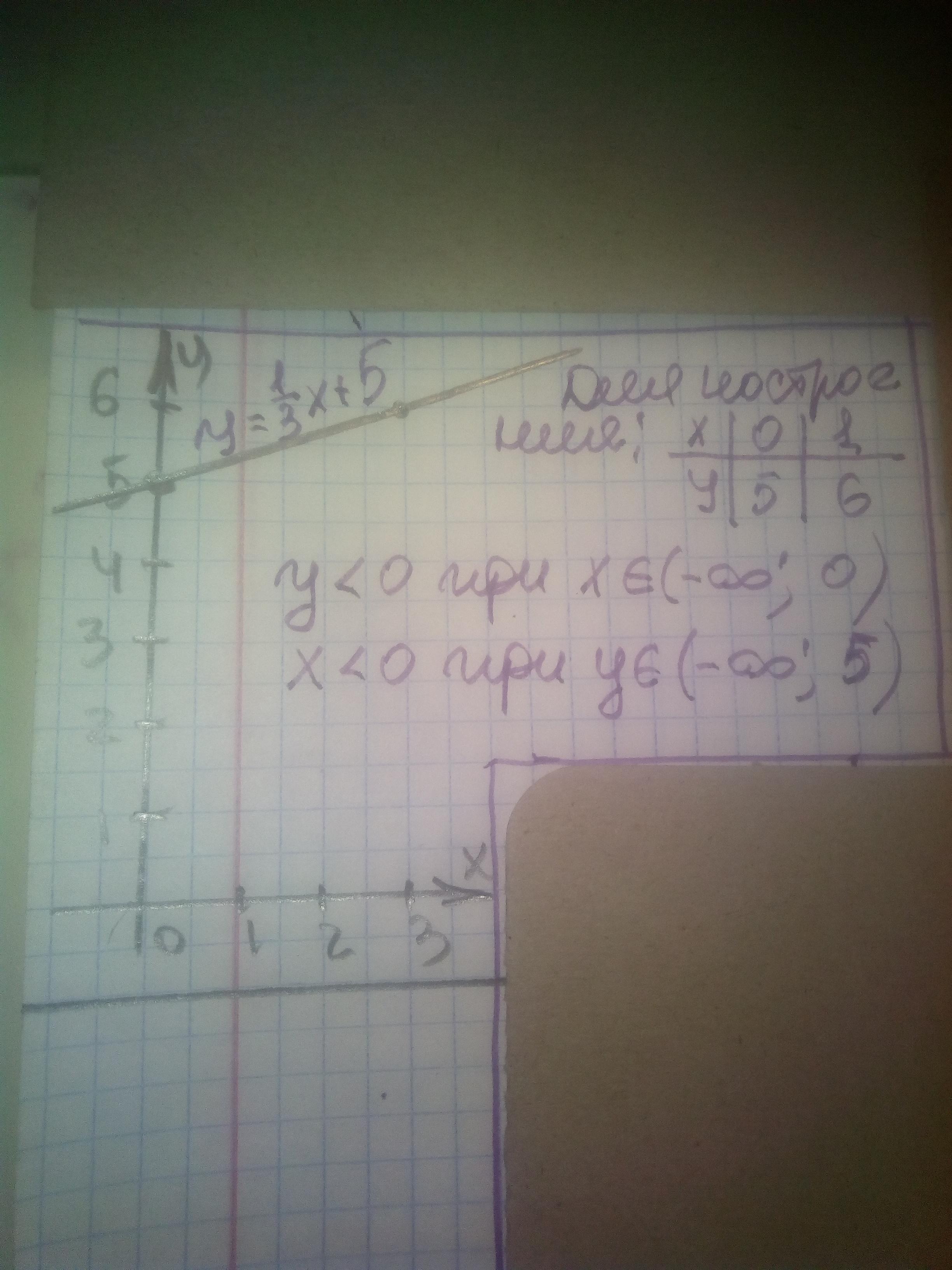построить график функции y = 1/3 х +5 при. каком смысле аргумент приобретает отрицательное значениепжпжпж СРОЧНО!!!!!!!!!!!!