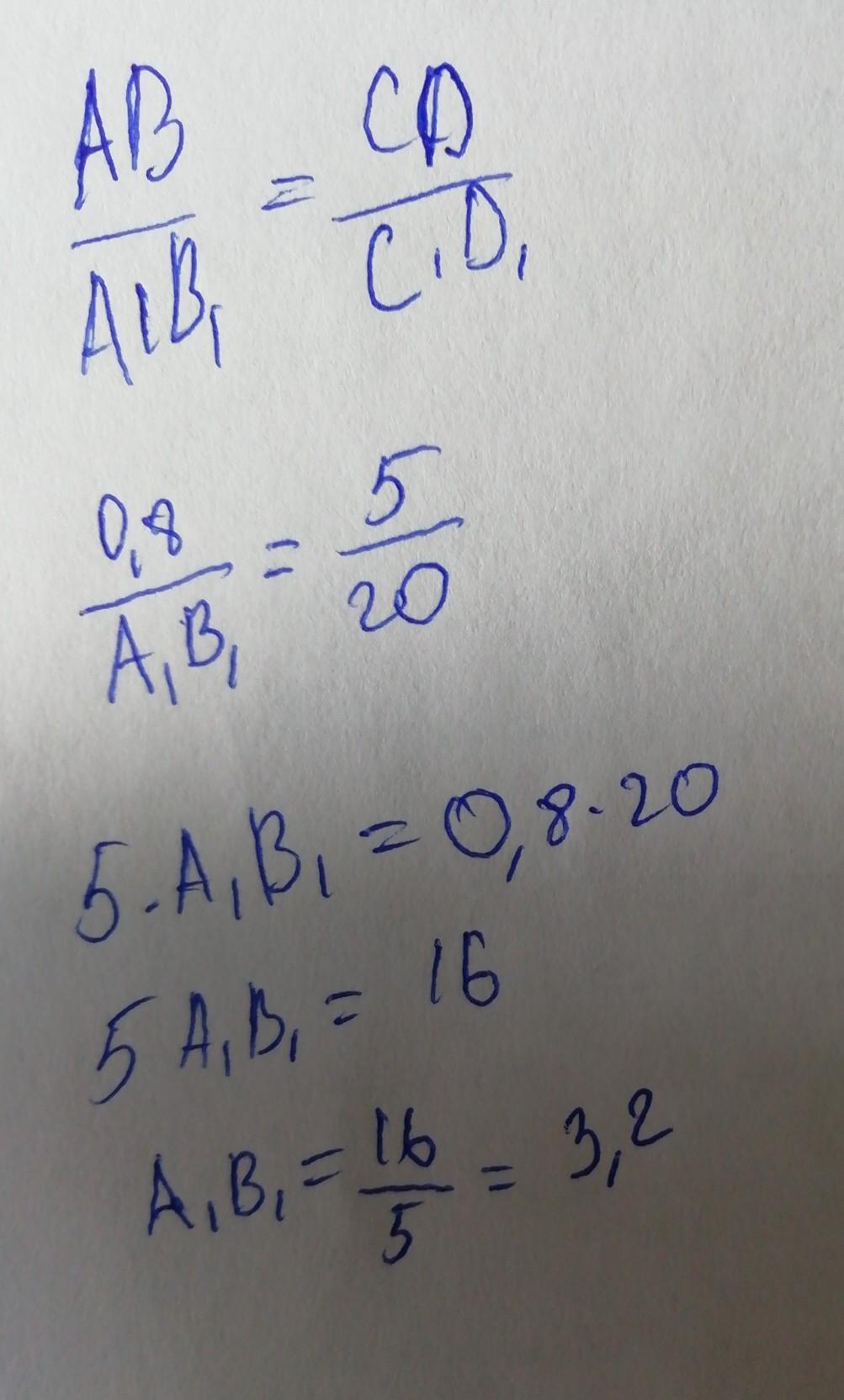 отрезок AB и CD пропорциональны отрезкам A1 B1 и C1 D1 Найдите A1 B1 если AB равно 8 мм CD равно 5 см и C1 D1 равно 2 дм