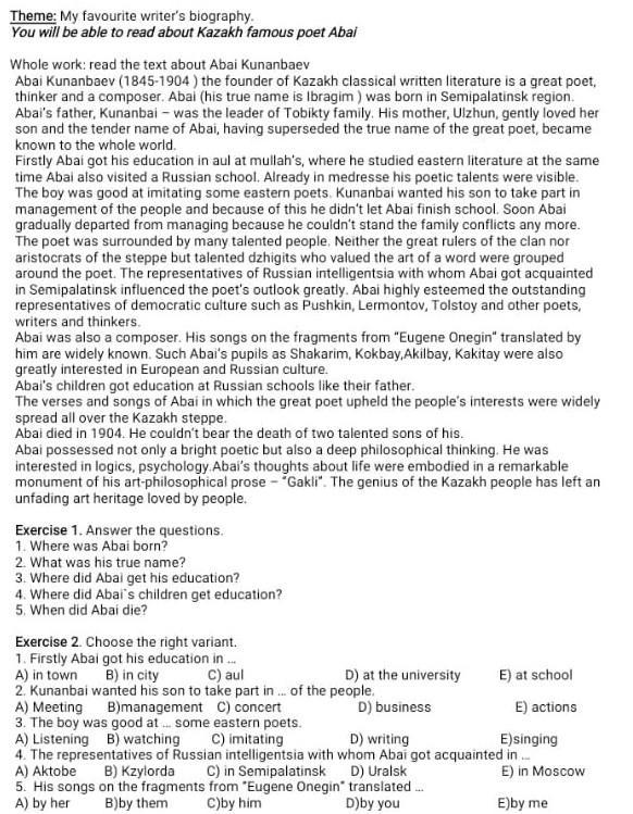 1. Abaı was born in Semipalatinsk region.