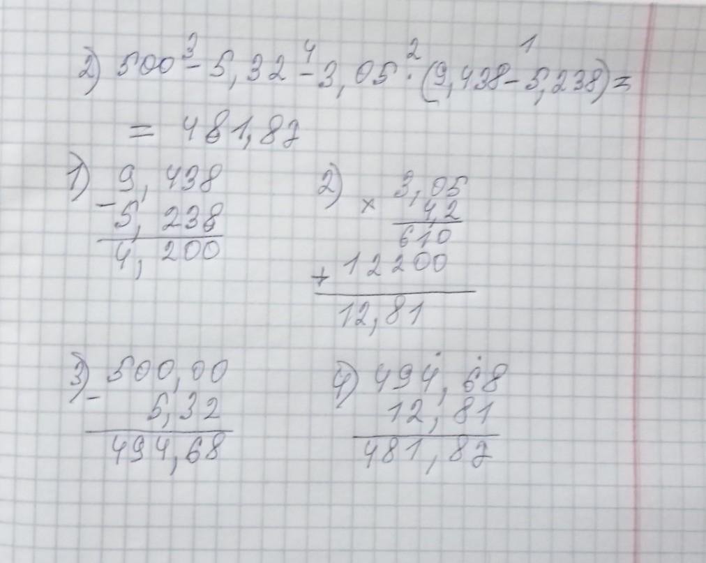 2)500-5,32-3,05×(9,438-5,238)
