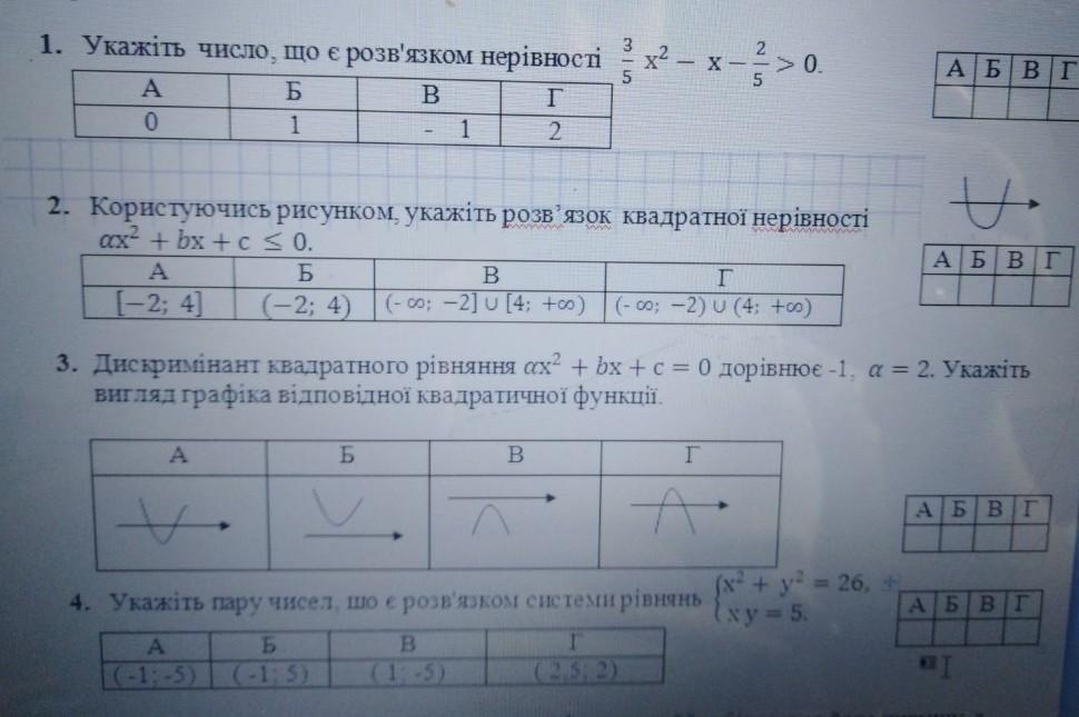 3.Дискриминант квадратного уравнения аx2+bx+c=0 pавна-1, а=32. Добавить вид графика соответствующей квадратичнот функций.