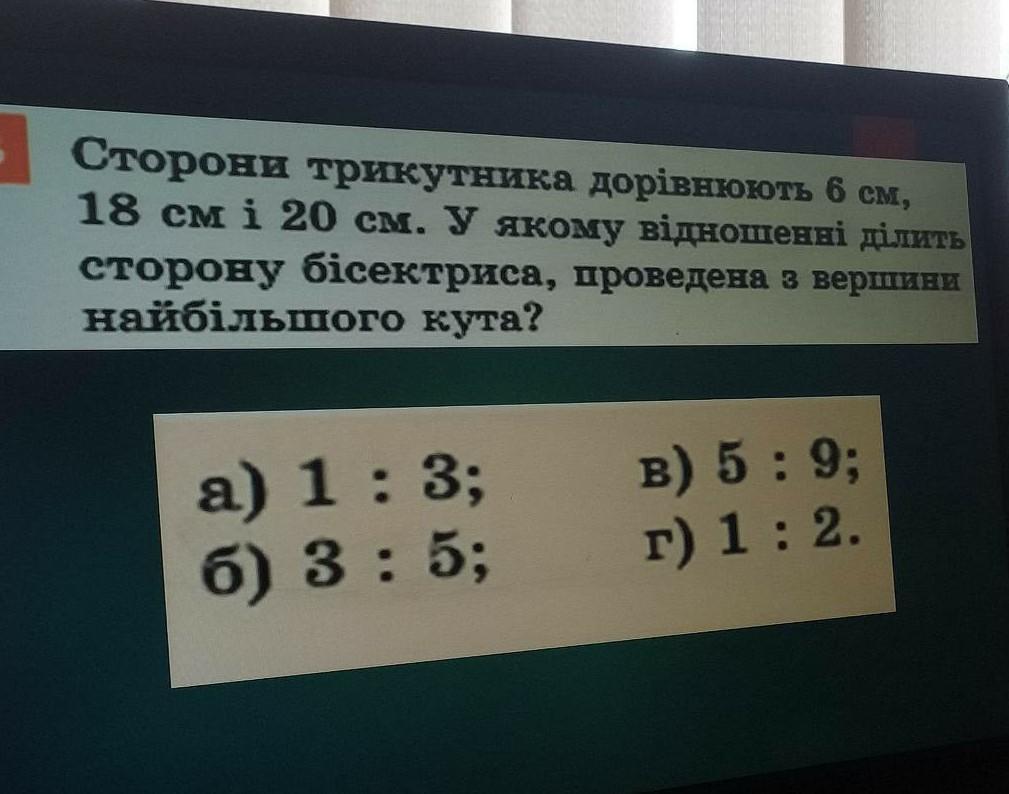 Обозначим вершины углов треугольника как показано на чертеже. Пусть АС=20 см, АВ=6 см, ВС=18 см.