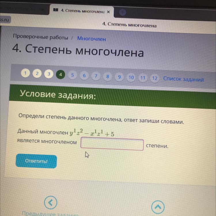 Степень многочлена - это наибольшая степень одночлена, из которых состоит многочлен. В данном случае 2