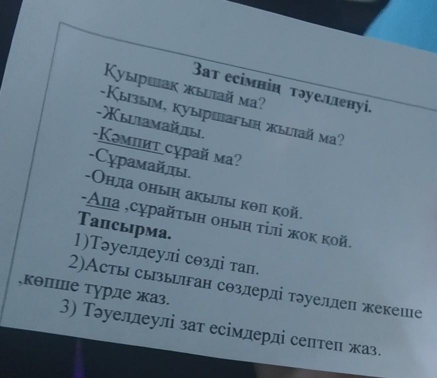 3) Тәуелдеулі зат есімдерді септеп жаз.