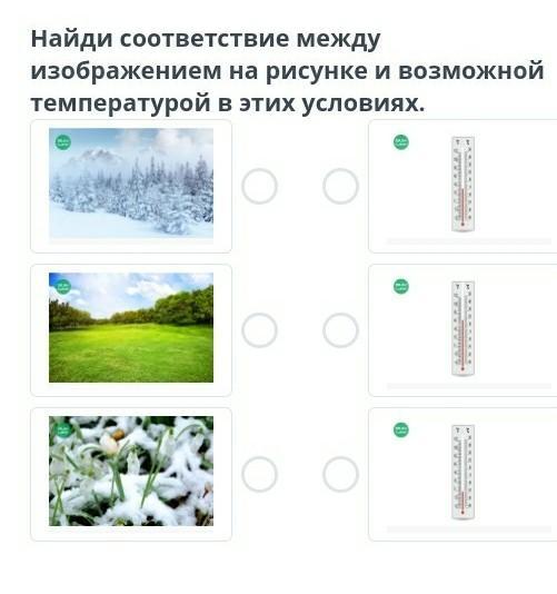 найди соответствие между изоображением на рисунке и возможной температурной в этих условиях