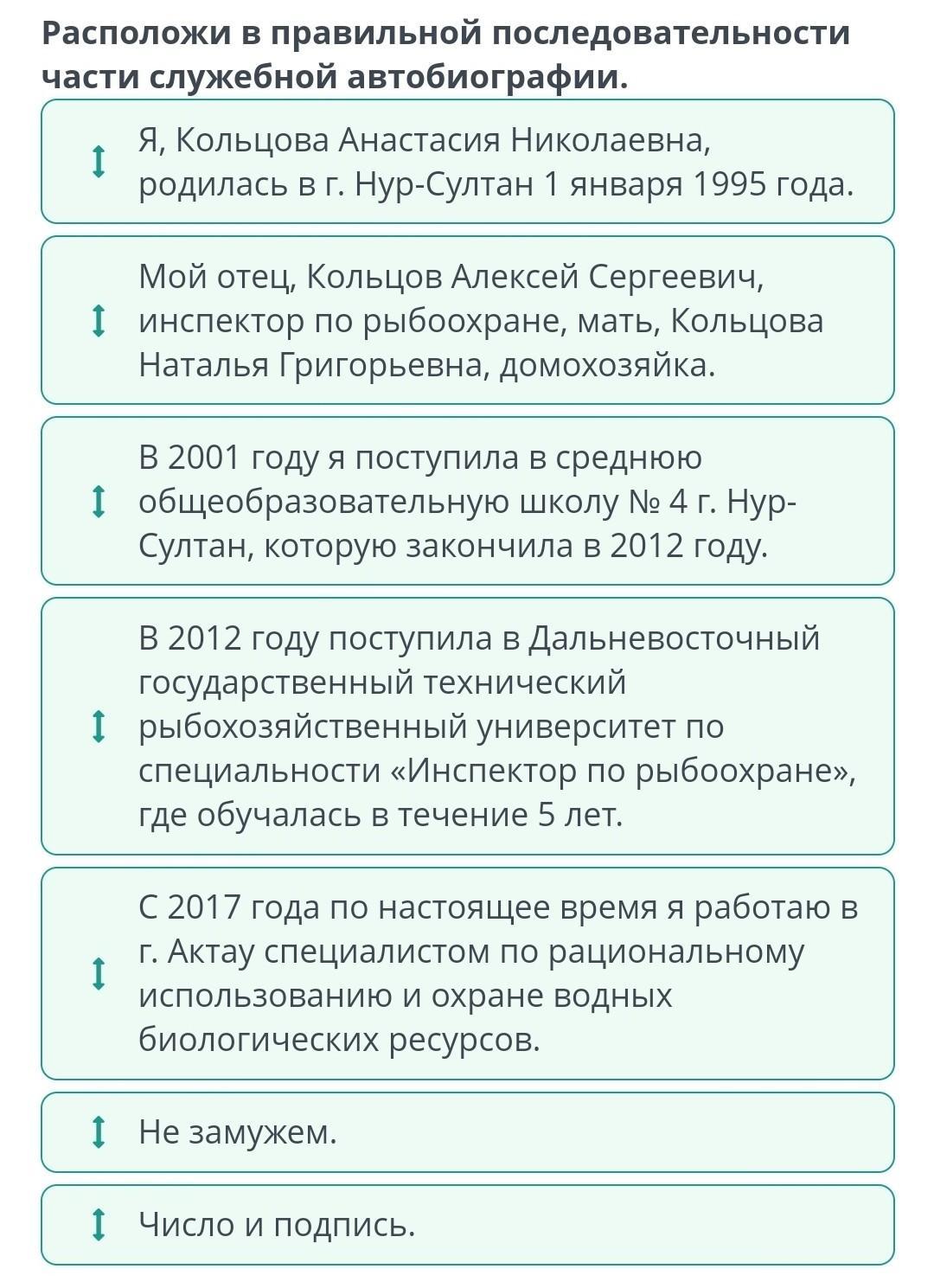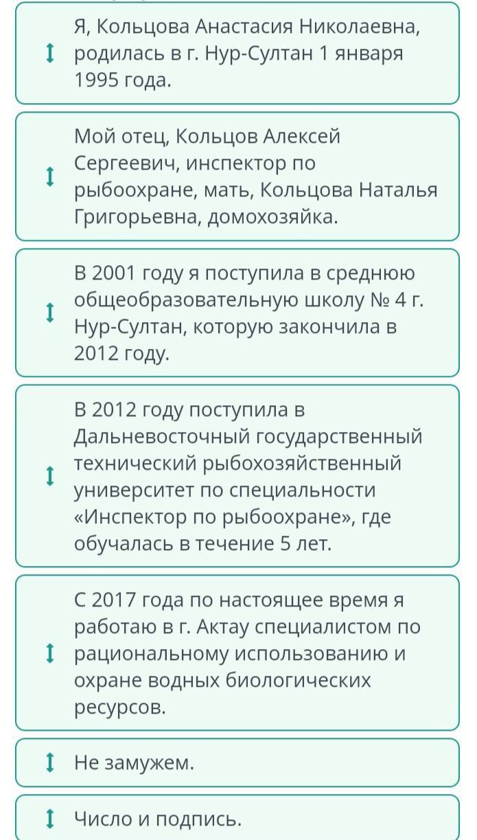 Расположи в правильной