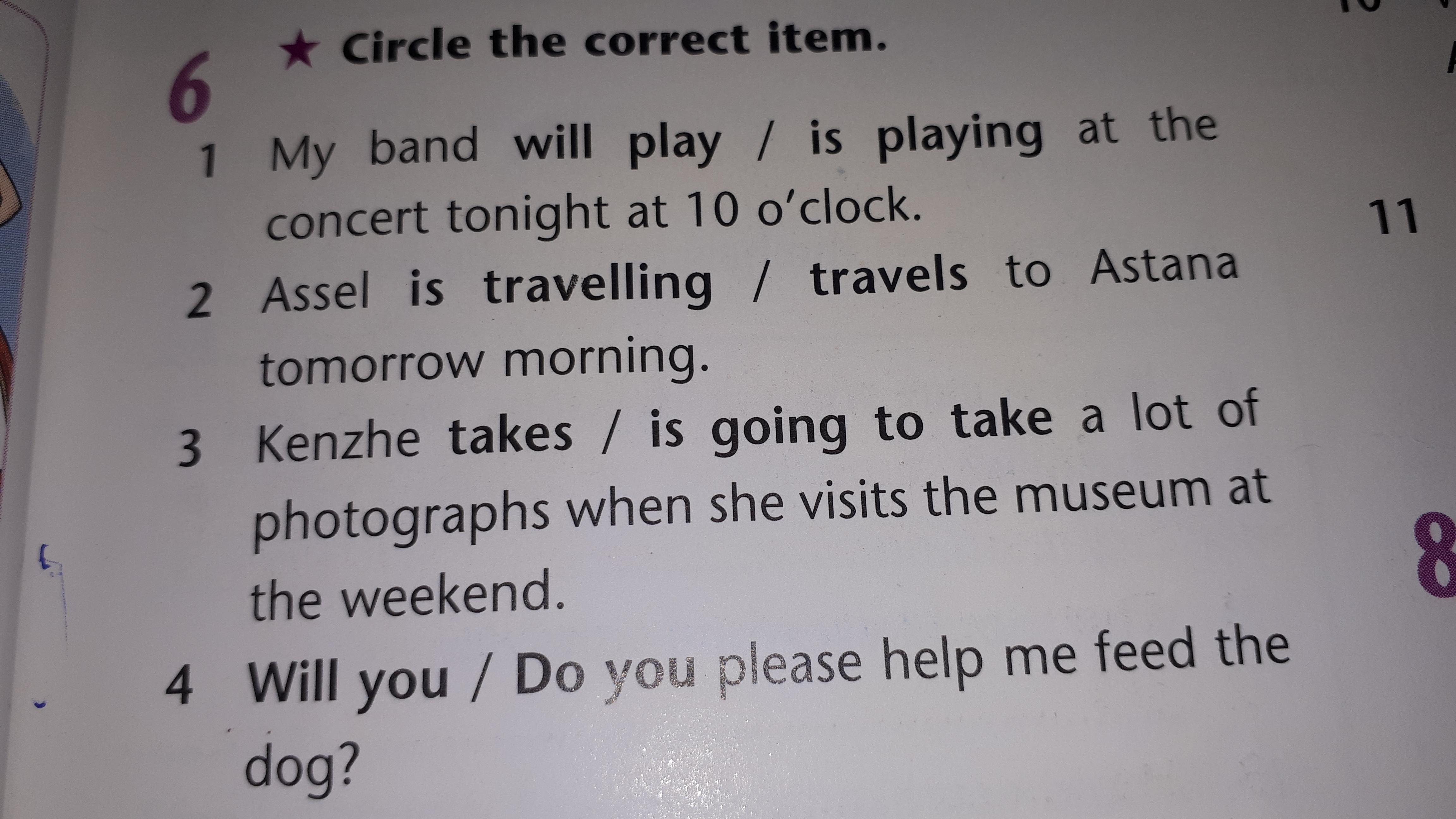 1:WIL PLAY 2:IS TRAVELLING 3:IS GOING TO TAKE 4:WILL YOU