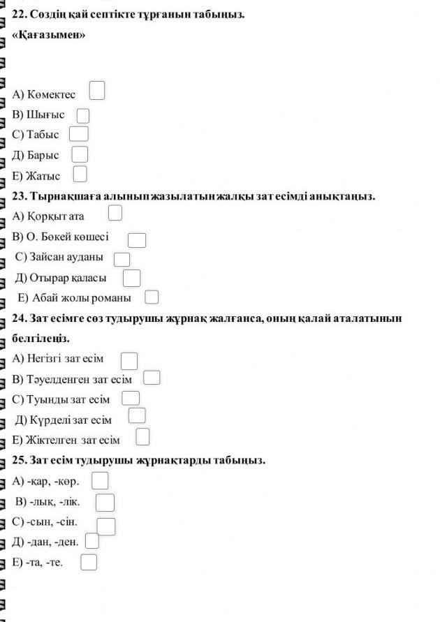 Осы жауаптар деп ойлаймын. Бірақ қәте болса алдын ала кешірім сұраймын. тек сіздерге көмек бергім келді