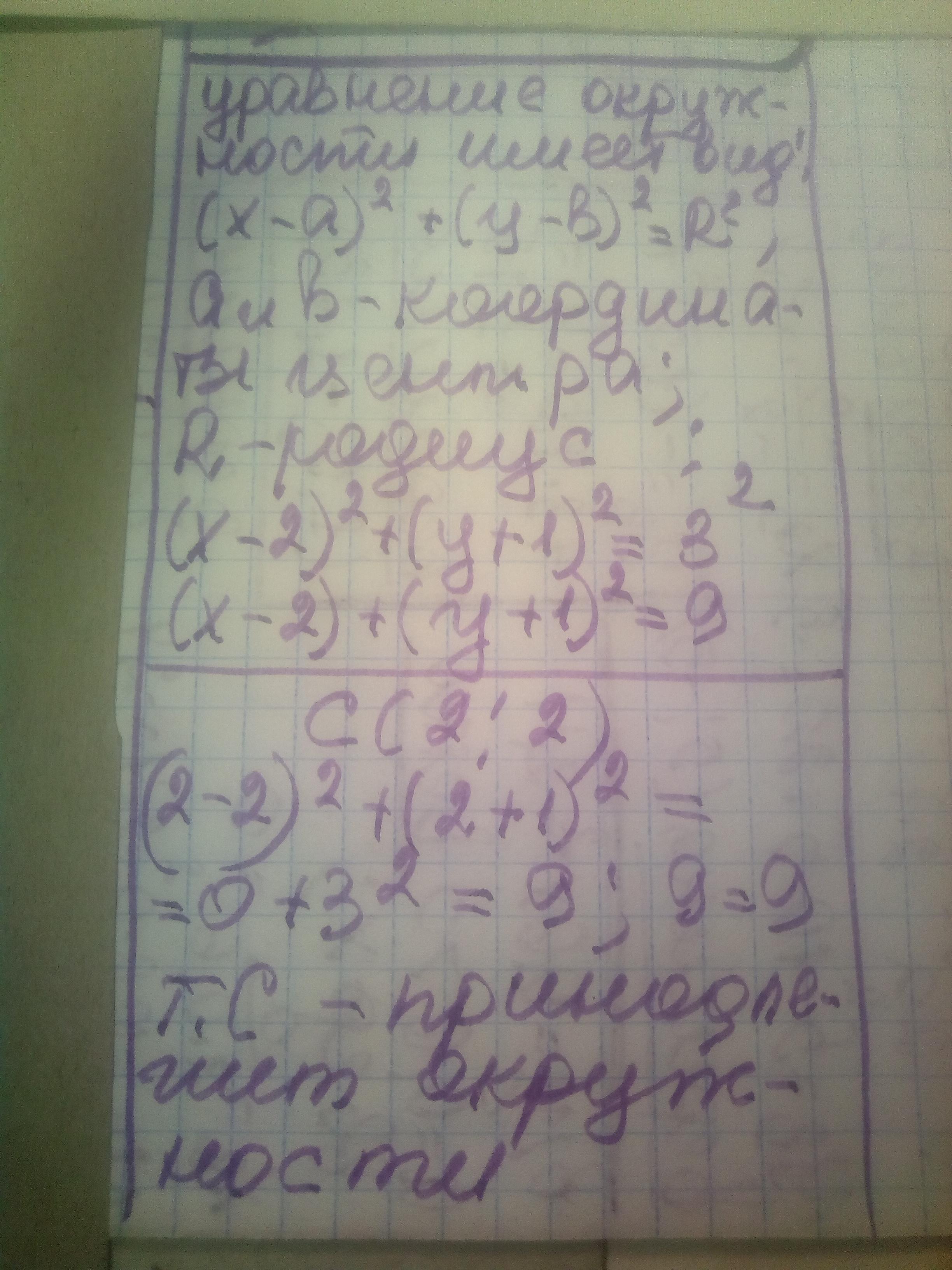 где м(2;-1) и R=3. Проходит ли данная окружность через точку С(2;2)?