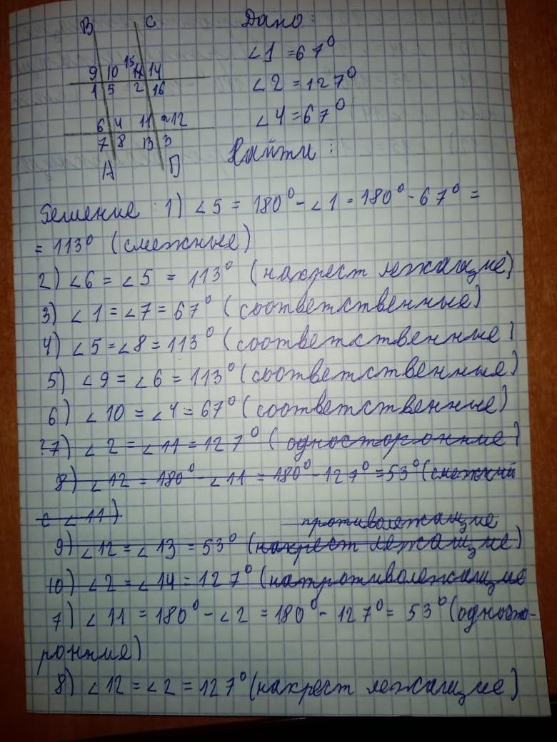 Геометрия 4 класс нужно найти все углы Номерация как на фото