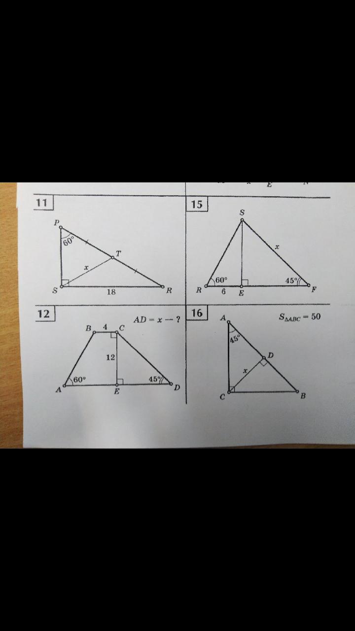 В 11 равносторонний треугольник , каждая сторона 60 градусов. А в 15 он прямоугольный что делает его угол 90 градусов 90+45=135 180-135=45