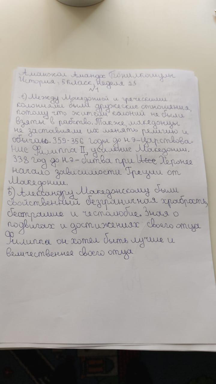Задание 1. Как выполнять письменное задание Как работать с историческим источником А) Напишите об особенностях взаимоотношений Македонии и ее колоний, используя исторические термины (не менее 2), даты (не менее 2) и события. Ответ должен состоять не менее чем из 5 предложений. Б) Прочитайте текст, напишите, какие качества были свойственны Александру Македонскому. "При Гранике его шлем был разрублен мечом, проникшим до волос… под Иссом — мечом в бедро… под Газой он был ранен дротиком в плечо, под Маракандой — стрелой в голень так, что расколотая кость выступила из раны; в Гиркании — камнем в затылок, после чего ухудшилось зрение и в течение нескольких дней он оставался под угрозой слепоты". (Плутарх)