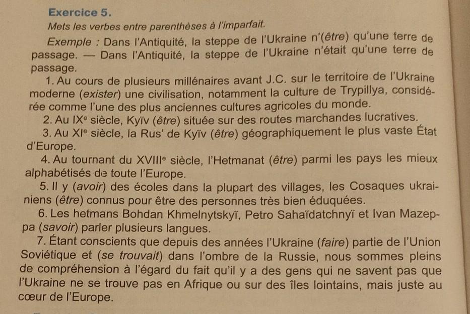 Не понятно, почему в седьмом задании в скобках дан готовый ответ в imparfait "se trouvait". Но уж как есть.