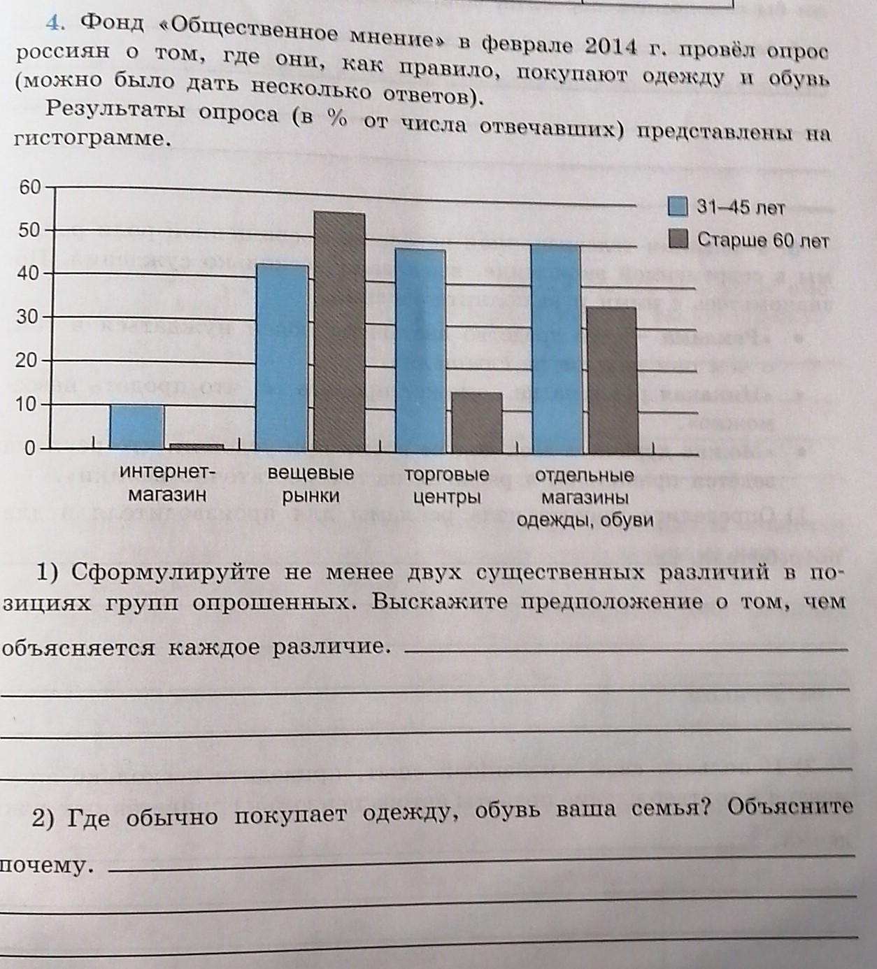 2) Где обычно покупает одежду, обувь ваша семья? Объясните