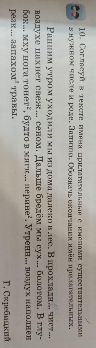 Ранним утром уходили мы из дома далеко в лес. В прохладнОМ чистОМ воздухе пахнет свежИМ сеном. Дальше бредём мы сухИМ болотом. В глубокОМ мху нога тонет, будто в мягкОЙ перине. УтреннИЙ воздух наполнен резкИМ запахом травы.