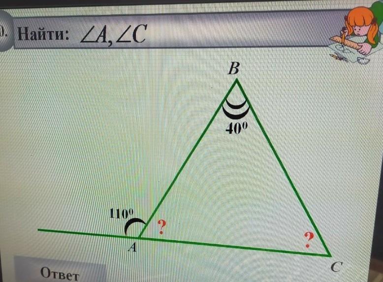Угол АСВ=180*-70*-40*=70*(по теореме о сумме углов треугольника)