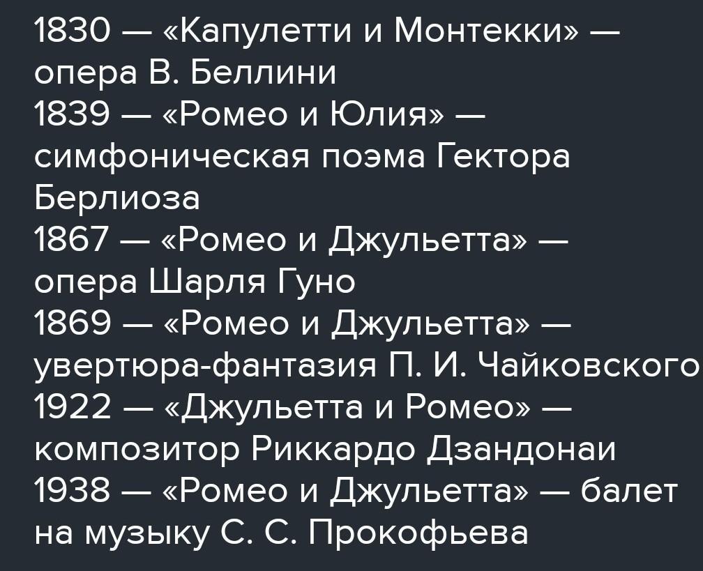 Назовите музыкальные произведения,в которых воплощалась тема Шекспировской трагедии Ромео и Джульетта .(название,автор и дата создания)