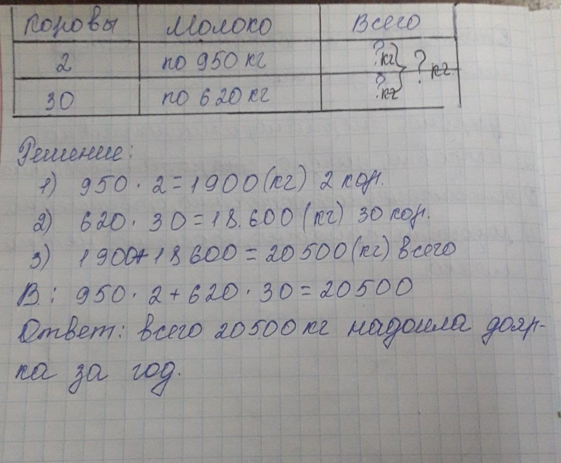 Доярка надоила от 2 коров рекордисток по 9500 кг молока за год и а 30 коров по 6200 кг сколько всего килограммов молока надоело Доярка за год этих коров? ДАЙТЕ РИСУНОК ТАБЛИЦЫ ПЖ