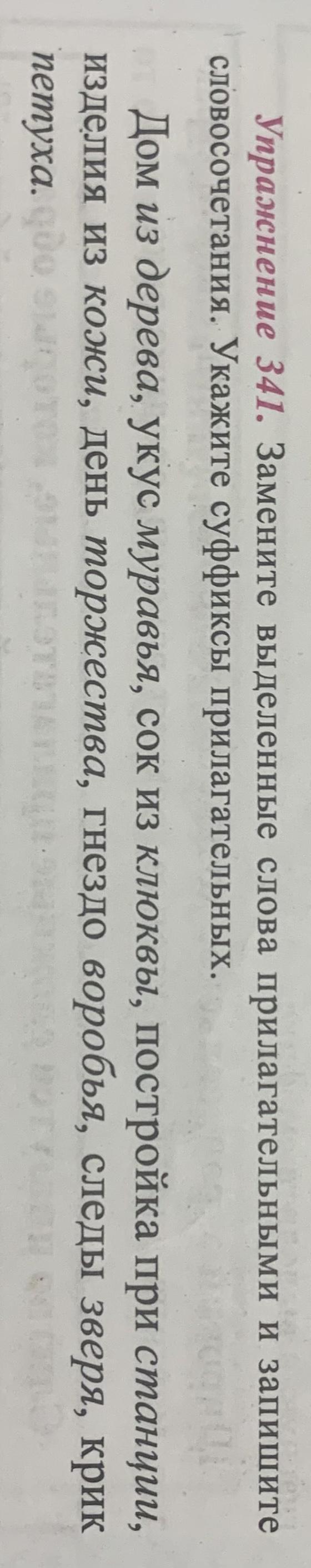 Деревянный дом, муравьиный укус, клюквенный сок, станционная постройка, кожаное изделие, торжественный день, воробьиное гнездо, звериные следы, петушиный крик.