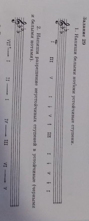 2.Напиши разрешение неустойчевых ступеней в устойчевые (черными и белыми нотами)