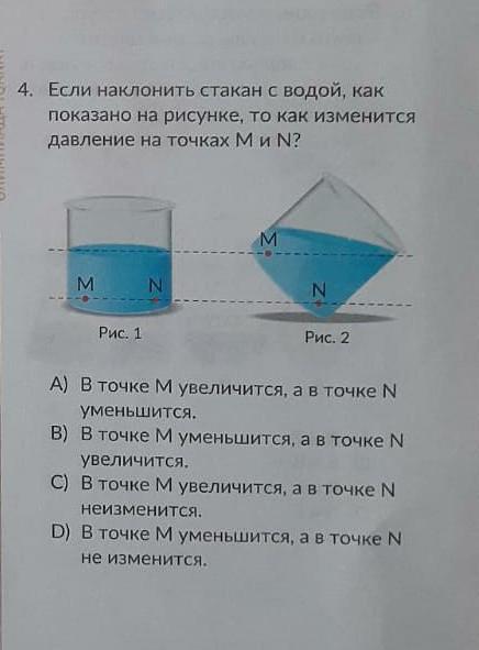 Объяснение: Правильный ответ а) В точке М уменьшится, так как высота столба жидкости в точке М уменьшится. Давление в точке N увеличится, так как увеличилась высота столба жидкости.