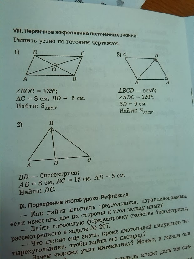 1) Площадь четырехугольника равна половине произведению диагоналей на синус угла между ними.