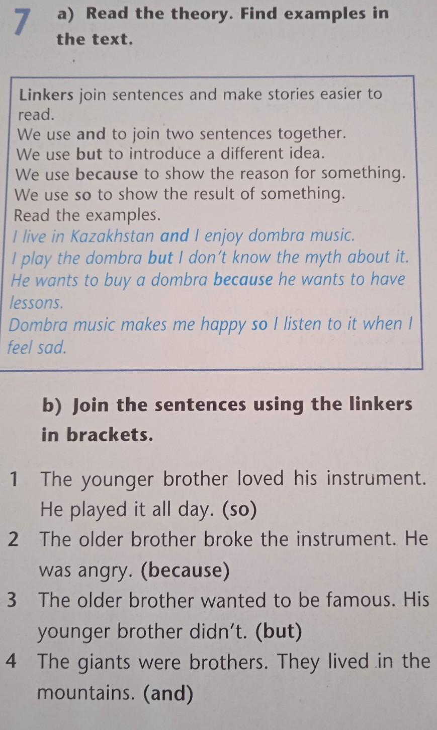 Объяснение: В задании надо вставить so, because, but, and между предложениями, тем самым связав их в одно целое.