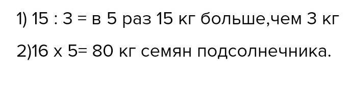 Чтобы получить 3 кг подсолнечного масла, надо взять 16 кг семян подсолнечника. Сколько килограммов семян потребуется, чтобы получить 15 кг подсолнечного масла?