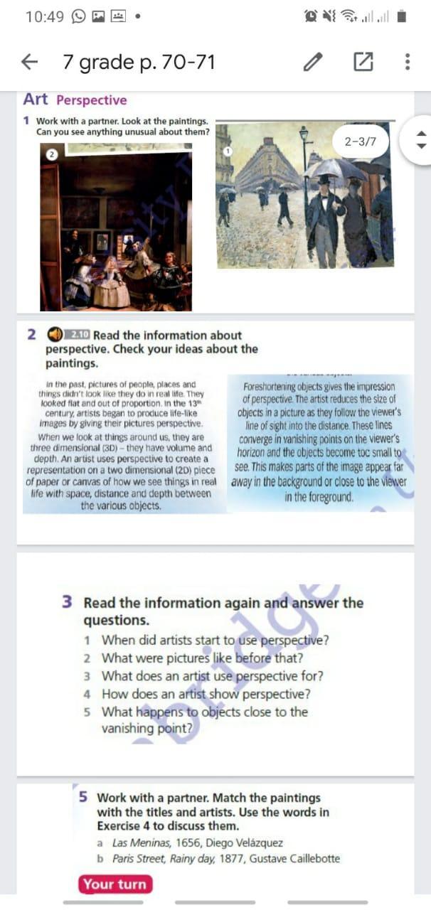 3.An artist uses perspective to create a representation on 2D piece of paper of how we see things in real life.