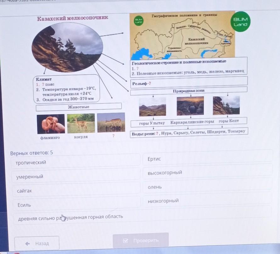 Внимательно изучи содеожание ифографики ПТК Казахский мелкосопочник дополни её верных ответов 5 тропический умеренный сайгак Есиль древняя сильно разрушеная горная область Ертис высокогорный олень низкогорный ответе пожалуйста