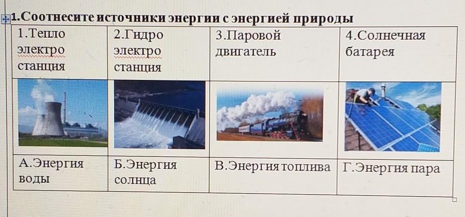 1.Соотнесите источники энергии с энергией природы