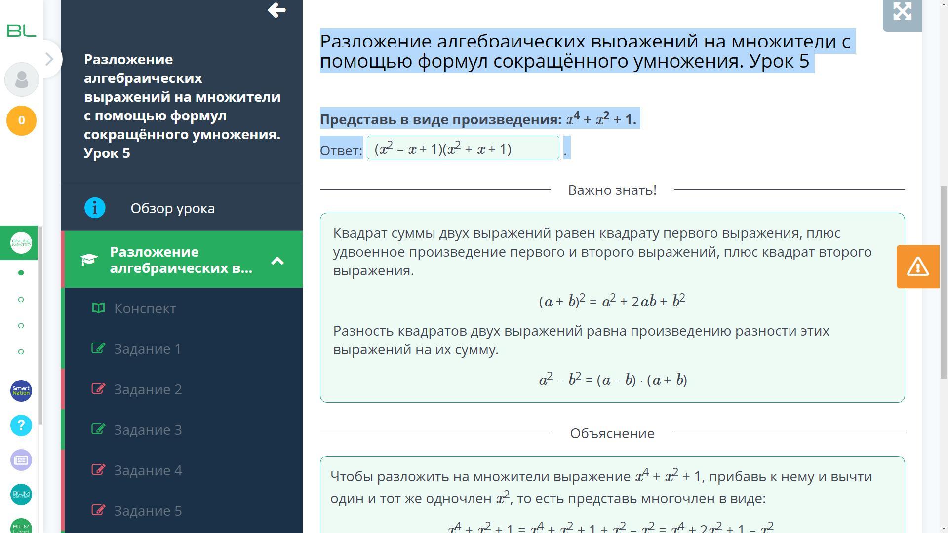Разложение алгебраических выражений на множители с помощью формул сокращённого умножения. Урок 5