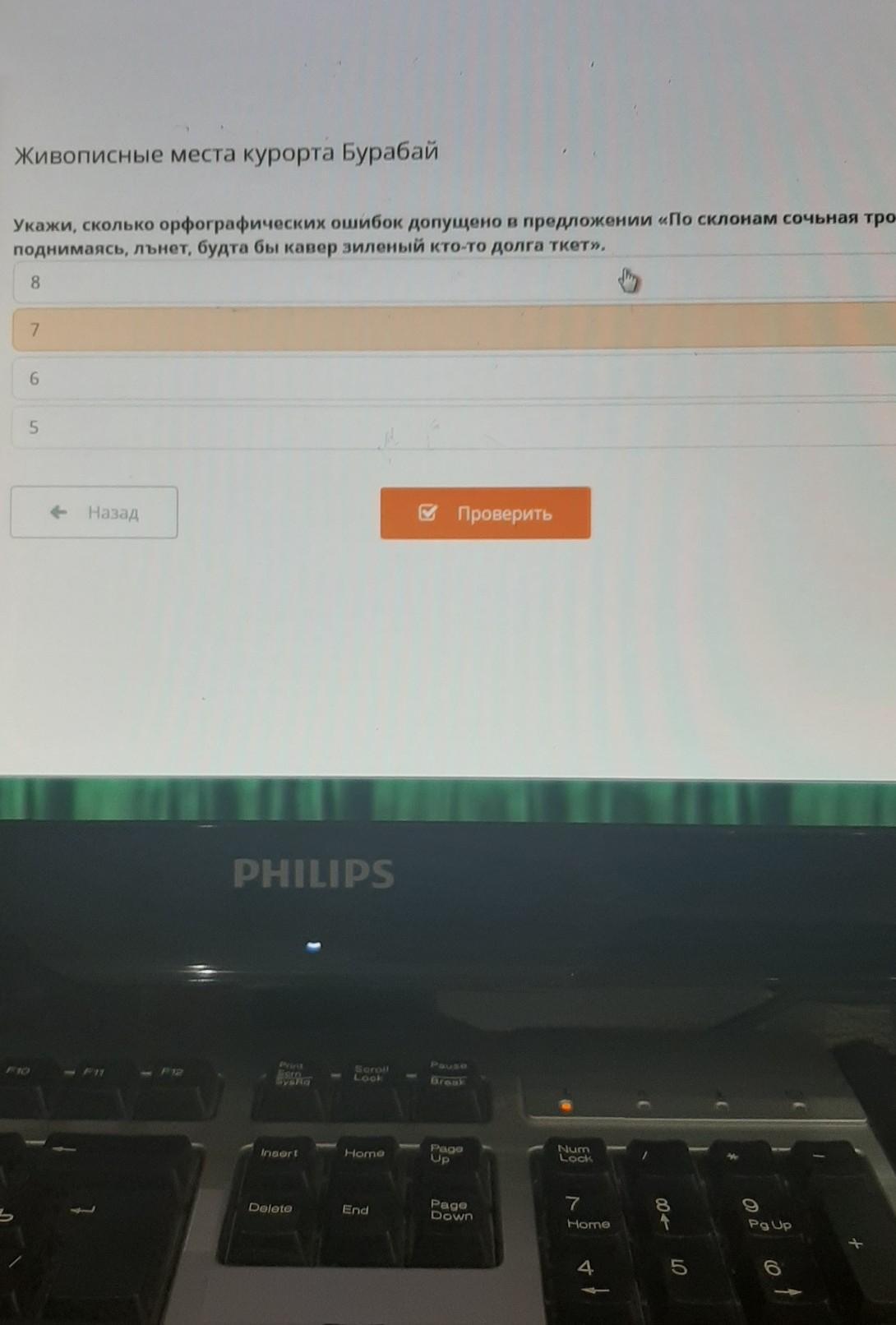 Укажи, сколько орфографических ошибок допущено в предложении «По склонам сочьная трова,