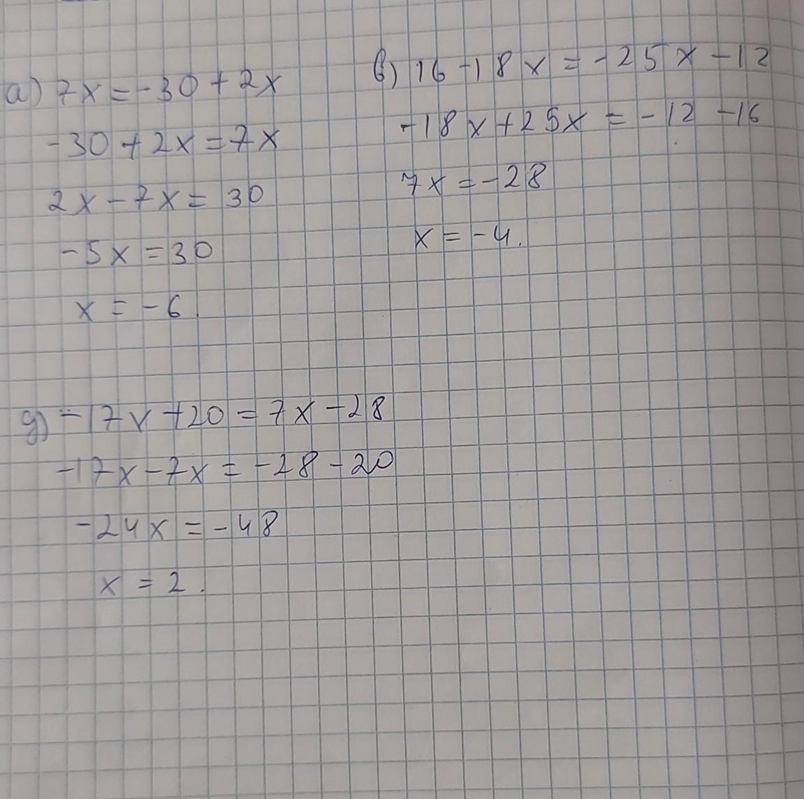 Неизвестные значения(значения с иксом) переносим в левую сторону,а числовые значения в правую.Подобные слагаемые прибавляем или отнимаем, в зависимости от знака. Полученное числовое значение в правой части, делим на значение с иксом.