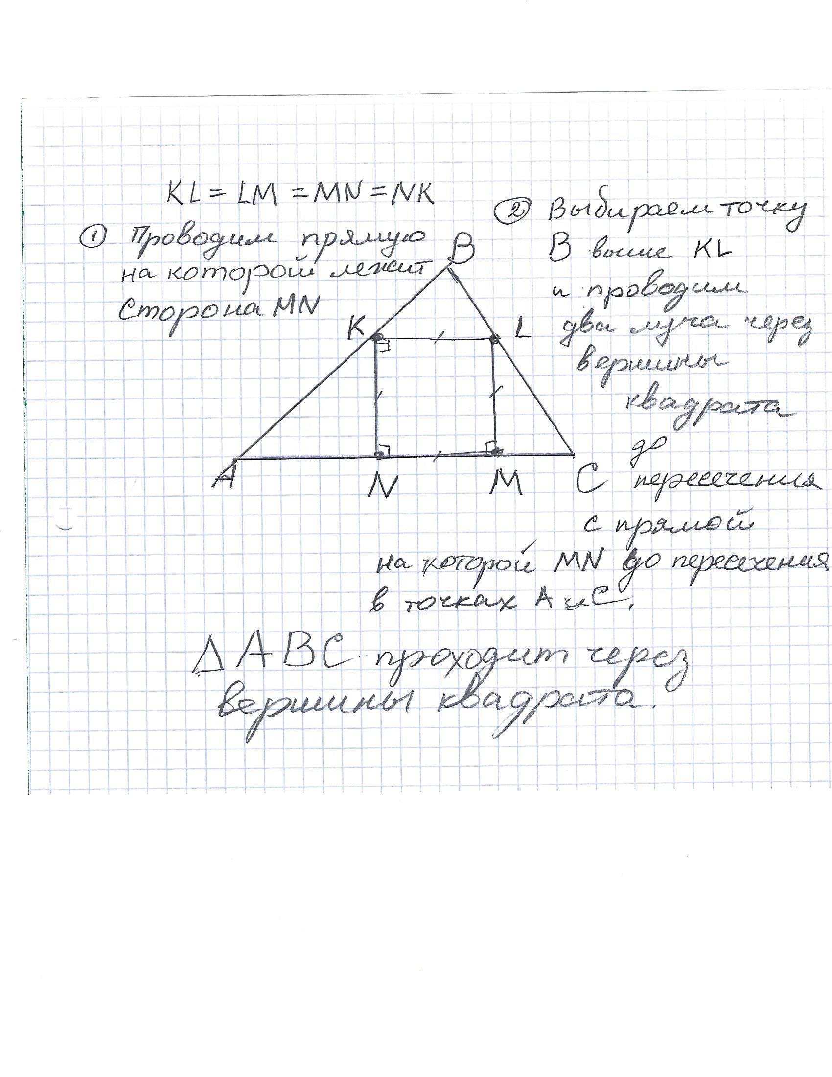 Нарисуйте треугольник через четыре точки в вершинах (углах) квадрата