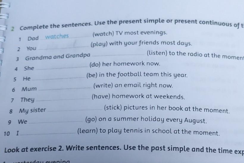 Complete the sentences. Use the present simple or present continuous of the verbs in brackets
