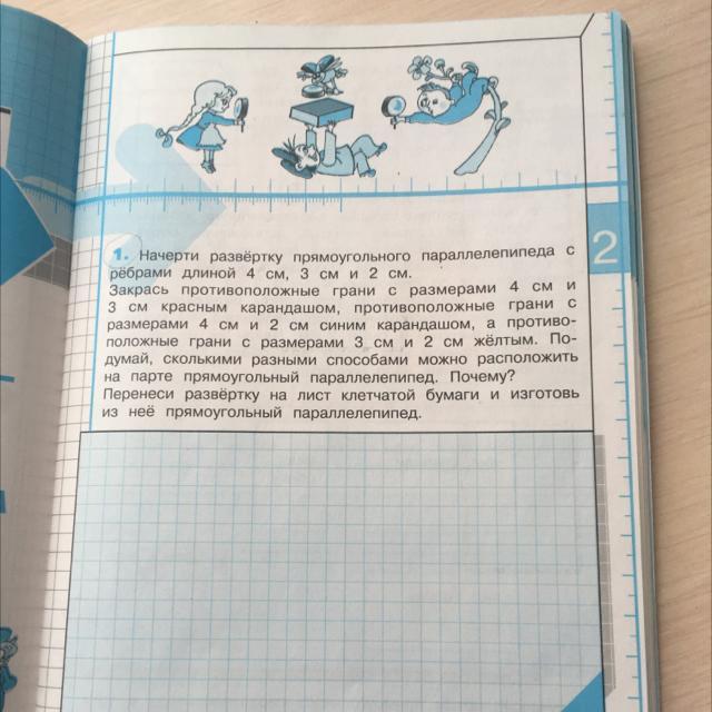 1. Начерти развёртку прямоугольного параллелепипеда с