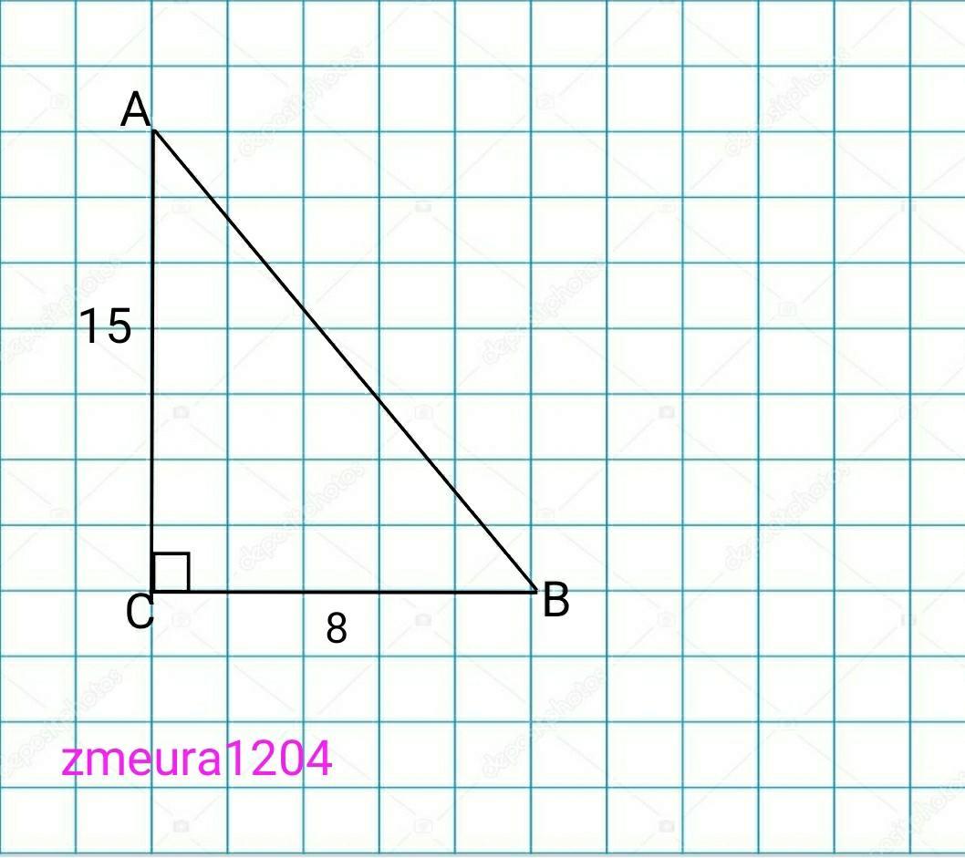 АВ=√(АС²+СВ²)=√(8²+15²)=√64+225)=